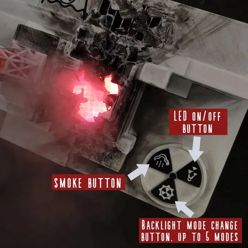 The humidifier will emit a fine mist while the LED lights simulate a glowing reactor effect.
